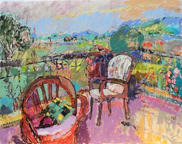 Influenced by Impressionism, Expressionism, and Fauvism, Fatat's paintings are a combination of all three. Her use of vibrant colors and bold brushstrokes is an expression of her pure emotions. Fatat's paintings are a recreation of her daily habits- where she sits, walks, and daydreams. Her works are often a source of joy and comfort.