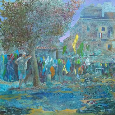 His work appears eclectic at first glance, but upon deeper analysis, it reveals a symbolic and metaphysical impact that blurs the lines between imagination and reality. Hussein's technique is pointillistic from a distance, but upon closer examination, it reveals an original and atypical style, rich in semiotics and visual methods.